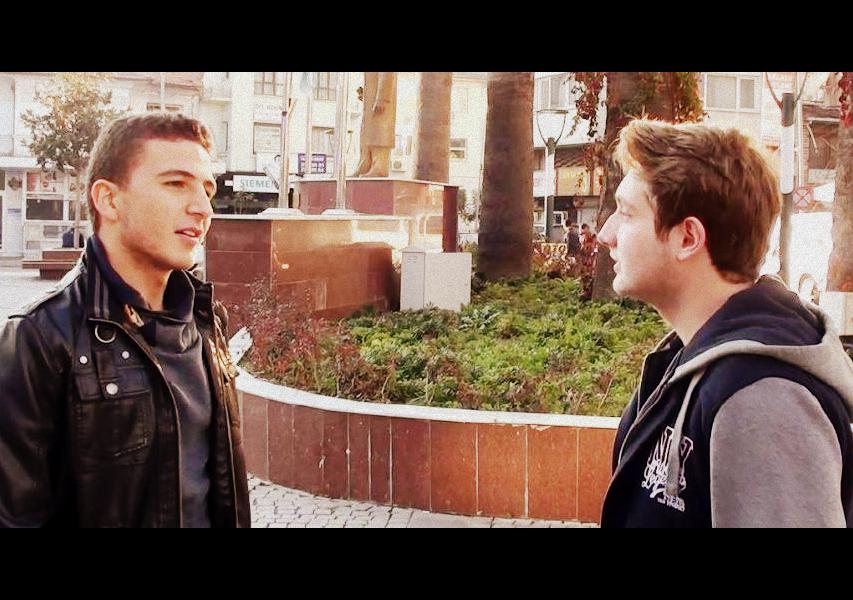 Um den Raum des Films zu definieren und zur Orientierung des Publikums sollten wir uns die die Aktionsachse bei 180º einhalten. Auch bei der Aufnahme von Dialogen, die Einstellungen von der Seite beinhalten, bleiben wir bei dieser Regel.