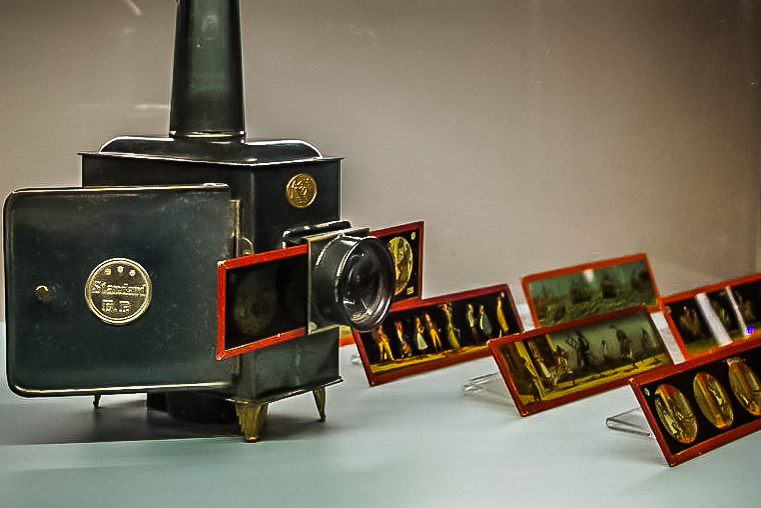 Projeksiyon makinesinin atasıdır ve 17. yüzyılda yaratılmıştır. Sihirli fener veya Lanterna magica, slayt projektörünün geldiği 20. yüzyılın ortalarına kadar eğlence için yaygın olarak kullanıldı. Cam tabaklara çizilen görüntüler bir mumla yakılarak duvara yansıtıldı. Hareketli görüntüleri mümkün kılmasa da günümüzde film projektörünün temelini oluşturuyordu. Hala mahallelerimizdeki bazı müzelerde ve özel koleksiyonlarda bulabiliriz.