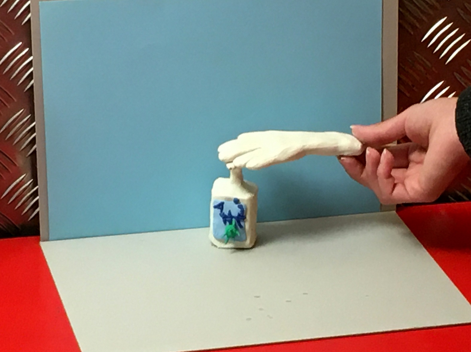 Karakterlerin, nesnelerin ve arka planların boyutları, kameranızın özelliklerine (örneğin kamera yakınlaştırmasının(zoom) ne kadar büyük olduğu) ve sahip olduğunuz malzeme miktarına da bağlı olabilir. Yukarıdaki resimlerde filmde kullanılan bir yakın çekime ait bir kurulumu ve nesneleri(eller) görebilirsiniz.