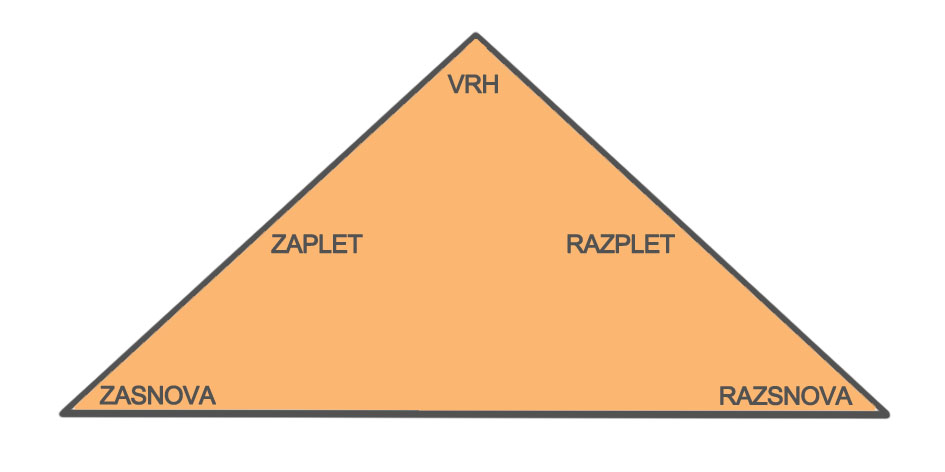 Klasično zgradbo zgodbe je raziskal in opisal že Aristotel v stari Grčiji. Klasična drama je običajno razdeljena na pet delov ali dejanj, ki tvorijo dramski trikotnik: zasnova, zaplet, vrh, razplet, razsnova.