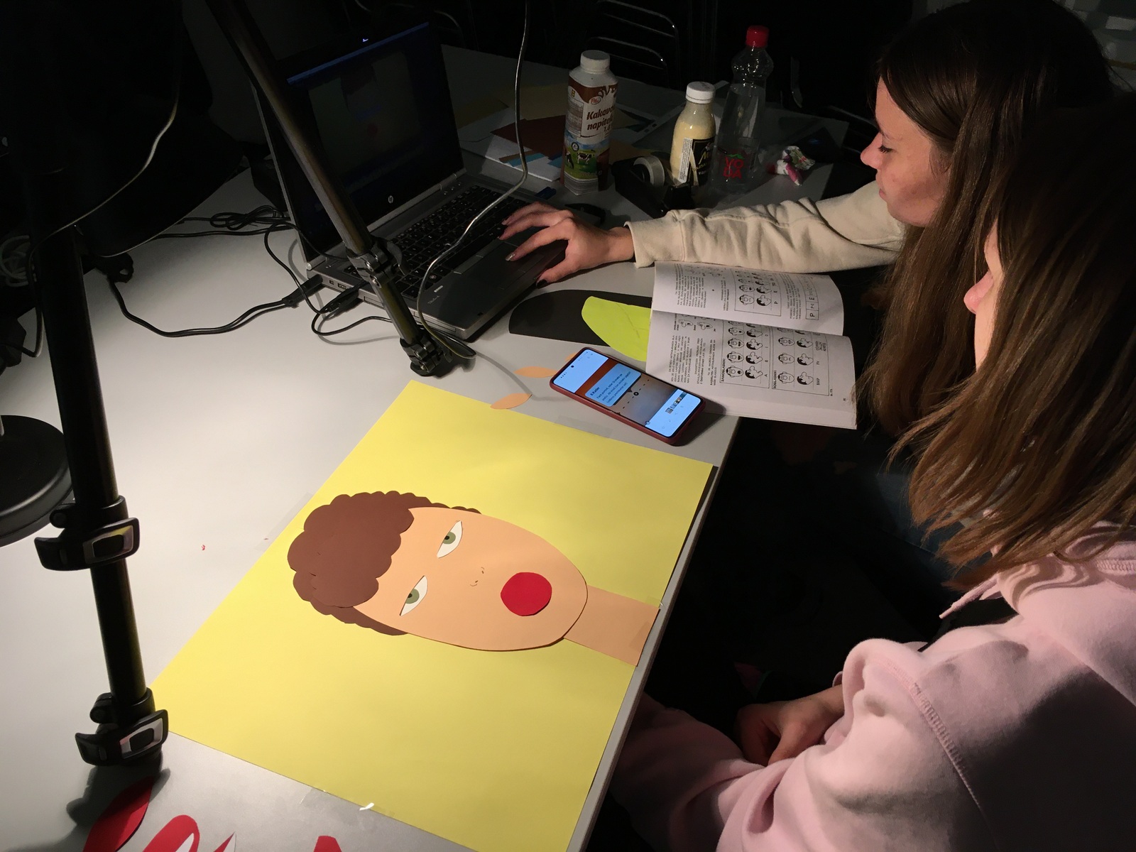 Yukarıdaki resimlerde farklı ağız pozisyonlarıyla konuşmayı canlandırırken bir atölyeden fotoğrafları görebilirsiniz. İlkinde farklı heceler için oluşturulmuş farklı formları, sağda ise canlandırma sürecini görebilirsiniz.