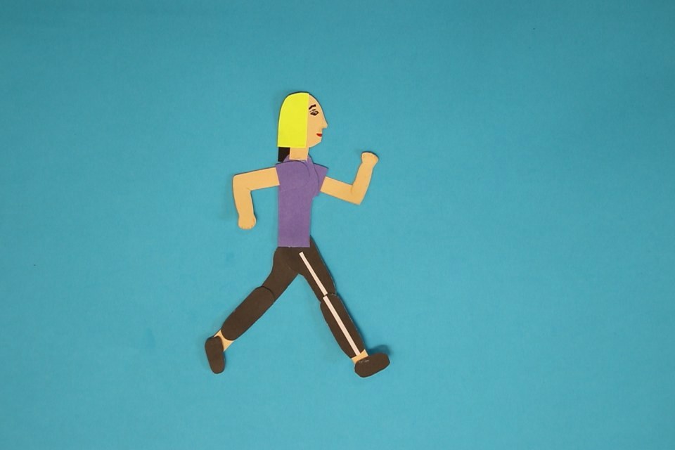 - Ayrıca bir yürüyüş döngüsü önceden çok iyi uygulanabilir. Yürümek için ihtiyacınız olan tüm hareketli özelliklere sahip kağıttan bir kişi oluşturun ve bir yürüyüş döngüsünü canlandırın.